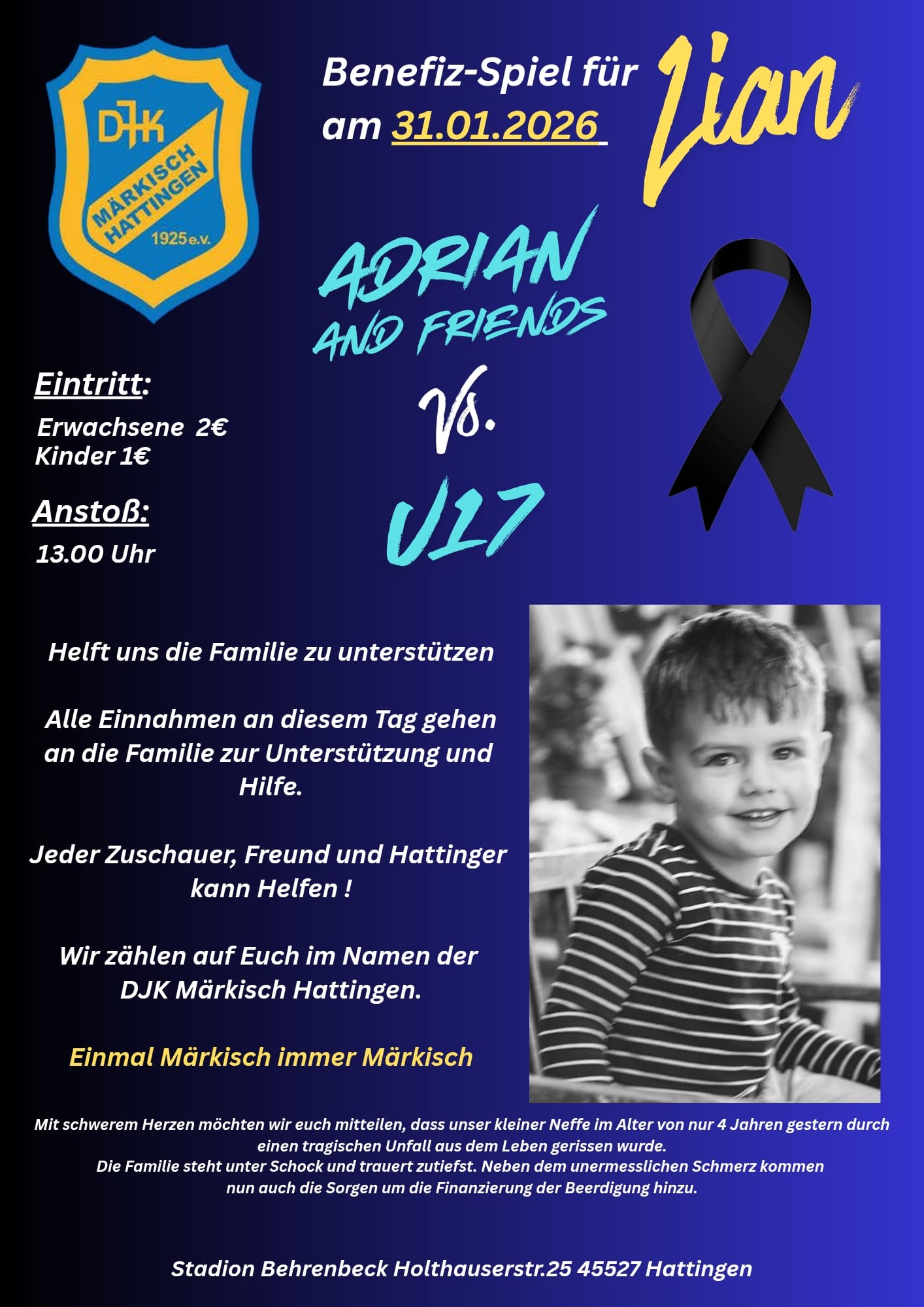 Benefiz-Spiel für Lian am 31.01.2026
